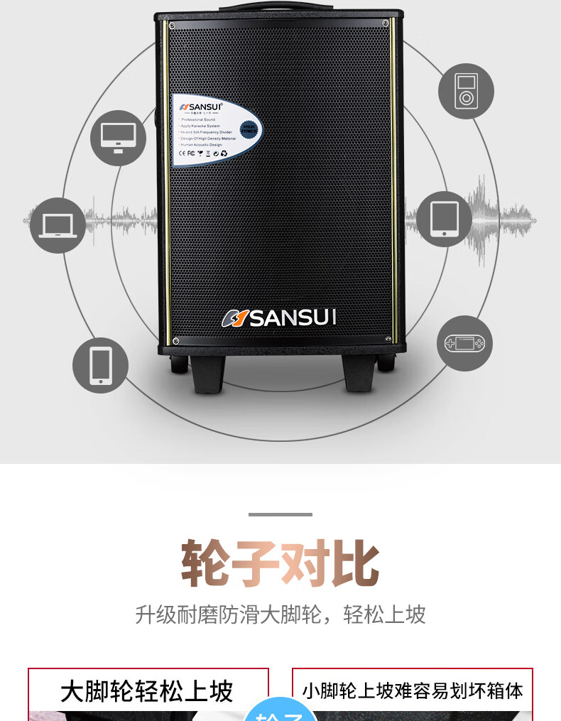 > 山水(SANSUI)广场舞音响直播K歌户外拉杆网红音箱便携式大功率家用移动蓝牙音箱带无线话筒麦克风 SA1-10英寸